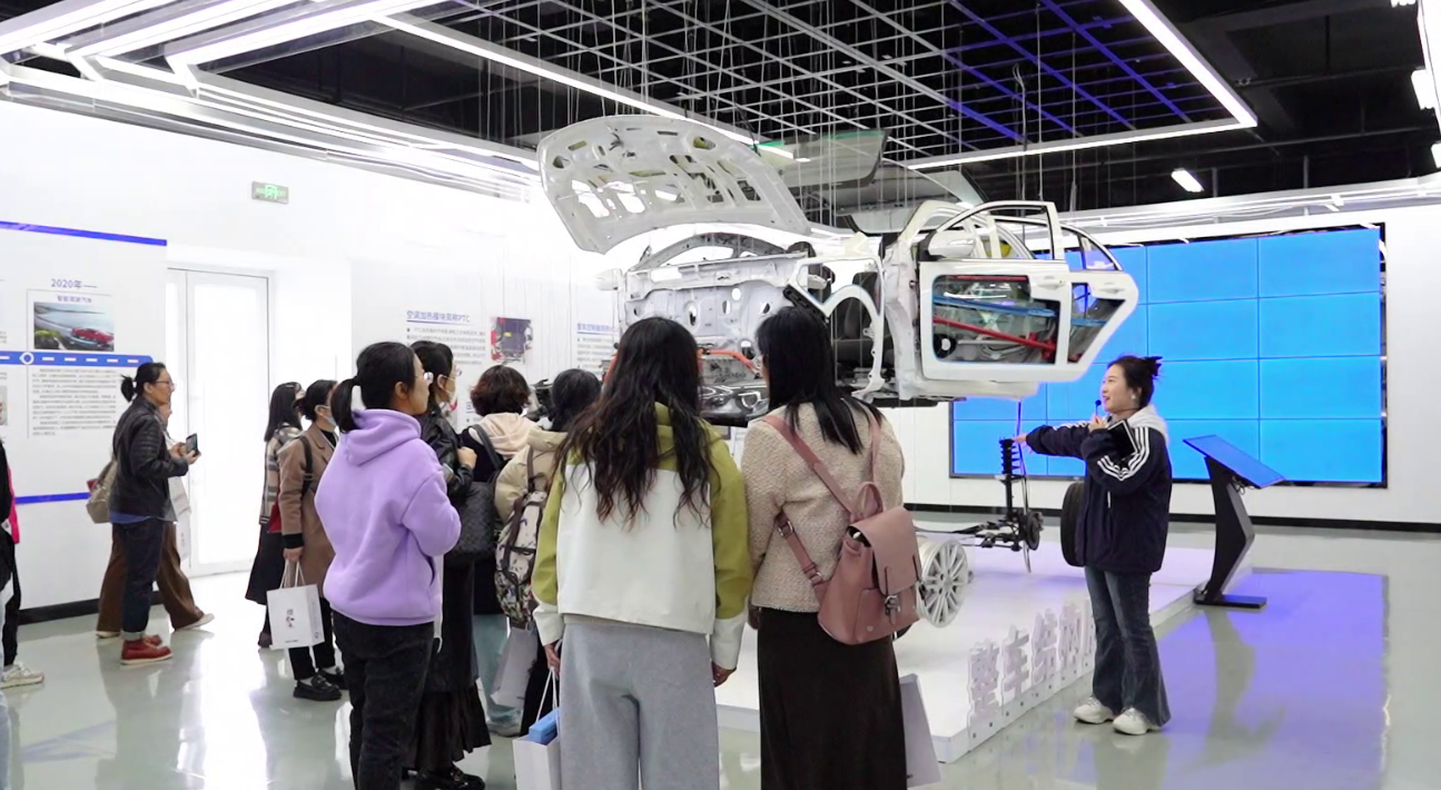 在D12008母婴护理实训室,“我是小小保育员”课程以情景模拟的方式,演示婴幼儿护理的基础操作,凸显劳动教育的生活价值;D区4号楼四楼的“我是小小主播”直播体验课程,搭建起真实直播场景,让参会人员体验新媒体时代的职业技能。在D区5号楼,作为学院特色的汽车类实践课程更是成为焦点——“人与汽车”汽车博物馆系统展示汽车发展历程,“六位空间虚拟现实汽车揭秘”借助VR技术拆解汽车构造,“我是无人机驾驶员”课程则在专业场地演示无人机操控,全方位呈现职业教育与劳动实践的深度融合。