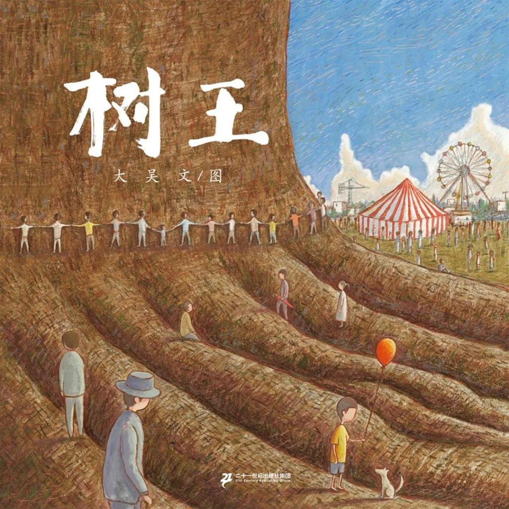 《树王》曾入围2017、2018年BIBF北京国际书展菠萝圈儿插画展。本书以树为主角,是一本人类与自然角力的书,一本反思工业化和城市化的书。本书主要讲述的是,小树在长成大树之前,没有人知道它是大树。当它长到普通树的大小时,大家都以为它只是一棵普通的树。后来它越长越大,人们才发现原来这儿有一棵这么大的树。人们在树下度过愉快的时光。树越长越大,被称作树王,越来越多的游客来这里参观树王,小镇变成了城市。树王是人们的骄傲。然而树还在长大,强壮的树根破坏了人类的房屋,树荫遮天蔽日。人们开始担忧起来,它们不知道树还会长多大……