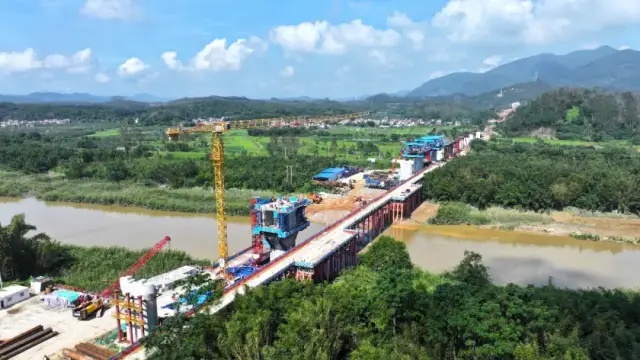 ▲ 深南铁路跨新兴江特大桥项目建设正酣。钟正谦 摄