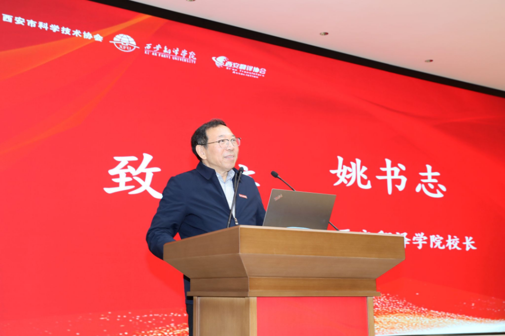 姚书志代表学校理事会、党政领导班子及全体师生,向与会领导、专家与嘉宾致以热烈欢迎和衷心感谢。他指出,党的二十届四中全会明确提出“深入实施科教兴国战略、人才强国战略、创新驱动发展战略”,本次论坛以“技术创新”与“翻译传播”为核心主题,既是对学校办学方向的充分肯定,更是对学校在新时代落实国家战略、服务区域发展的有力鞭策。他强调,“技术创新”是高质量发展的核心引擎,“翻译传播”是知识流动与技术转化的关键桥梁,二者深度融合是构建现代化产业体系、培育新质生产力的重要路径。西安翻译学院将以此次论坛为新起点,深化与市级学会、区县科协、高校及企事业单位的合作,主动向产业界学习,推动校企实质对接,共建实训基地、共研技术课题、共育未来人才,切实实现“政产学研用”协同发展,为西安、陕西高质量发展贡献“西译力量”。最后,姚书志预祝论坛圆满成功。