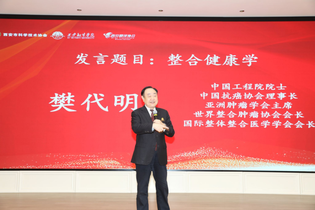 10月27日,由西安市科学技术协会主办,西安翻译学院与西安翻译协会共同承办的“技术创新与翻译传播赋能高质量发展论坛暨学术金秋示范活动”在西安翻译学院隆重开幕。西安市科学技术协会党组书记、常务副主席耿占军,西安市科学技术协会党组成员、副主席张传时,陕西省科协学会部部长朱炜,西安郭杜教育科技产业开发区党工委书记梅春满,西安翻译学院校长姚书志,党委副书记、工会主席、西安翻译协会理事长王小惠等领导出席活动。中国工程院院士、中国抗癌协会理事长、亚洲肿瘤学会主席、世界整合肿瘤协会会长樊代明,全国翻译专业学位研究生教育指导委员会副主任委员、上海国别区域与全球治理研究院理事长、原上海外国语大学党委书记姜锋,西北工业大学教授、博士生导师、国家级领军人才李致朋应邀作主旨发言。姚书志主持开幕式。