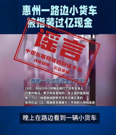 辟 谣 广东惠州街头一货车装有过亿现金?实为道具