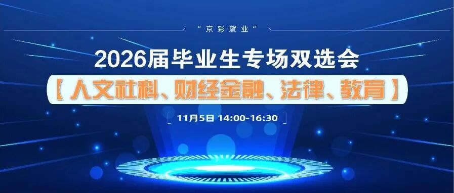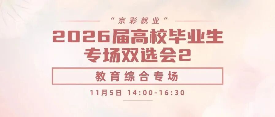 11月5日,将举办【教育综合专场】及【人文社科、财经金融、法律、教育】两场主题双选会。参会单位包括北京市第五十五中学、北京工业大学附属中学、北京市第十三中学分校、北京中学、北京市海淀区实验小学、中电普瑞电力工程有限公司、北京保障房中心有限公司、天津银行股份有限公司北京分行等60余家企事业单位,提供近1500个招聘岗位。岗位涵盖各学科教师、财务管理、成本管理、投资方向、审计、法务、新媒体运营等多个领域。诚邀广大有择业就业意向的毕业生踊跃参与。