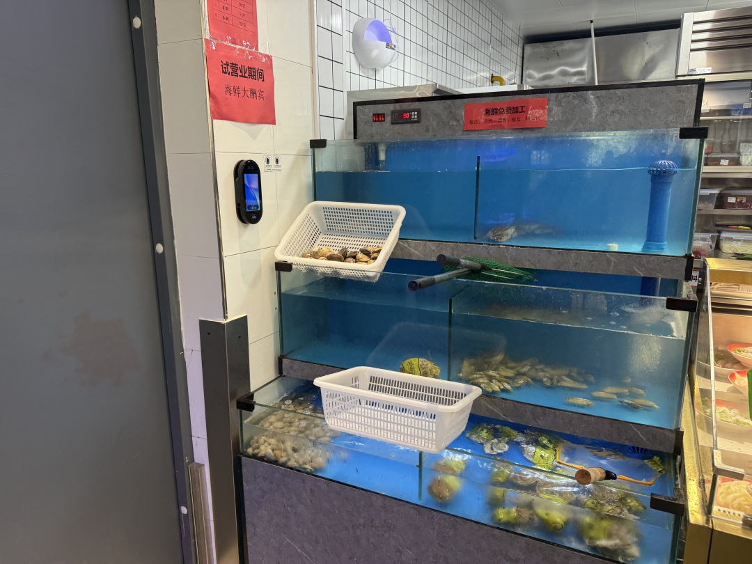 11月4日中午十二点,南京大学仙林校区九食堂里人声鼎沸。这里汇聚了南大食堂里一些特色美食档口——汤包、烧烤、火锅,学生李天齐一家家看过去,最终停在了“渔船海鲜”档口。养殖缸是空的,已经没有了“售价999元一只”的帝王蟹。