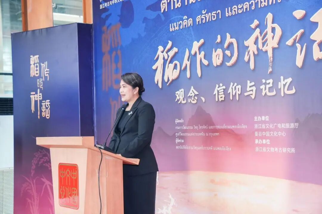 泰国文化部副次长初迪嘉·阿卡拉吉索帕昆女士在致辞中表示,稻作连接了中泰两国的友谊,本次以稻作为主题的活动与展览,富有创新意义,增进了大家对稻作文明的认识。她表示,今后,泰国文化部门将与中国文化部门经常交流,促进中泰两国的友谊。