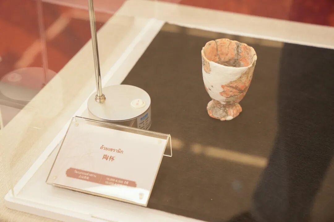 本次展览围绕长江下游稻作文明的精神信仰,以“缔造神话:良渚国家与礼制文明”“溯源神话:上山、跨湖桥的图符信仰”“孕育神话:河姆渡文化的图像礼仪”和“共享神话:东亚稻作文化圈”四大板块展开。展览之初,通过呈现五千年前良渚高度发达的早期国家文明,提炼出稻作文明的深层次精神特征,继而从上山、跨湖桥、河姆渡乃至中泰两国共享的稻作文化共性,勾勒出一条稻作神话信仰的发展路径。伴随现场丰富的考古成果图文展示、高精度的文物复制品以及丰富的文化互动内容,让观念信仰变得可触可感,让文明对话突破疆界,为中泰的人文交流沉淀下兼具历史厚度与精神温度的文化记忆。值得一提的是,此次展出了4件上山文化代表性文物,包含大口盆、太阳纹彩陶片、石磨盘石磨棒、陶杯等,这也是上山文化首次走进泰国。