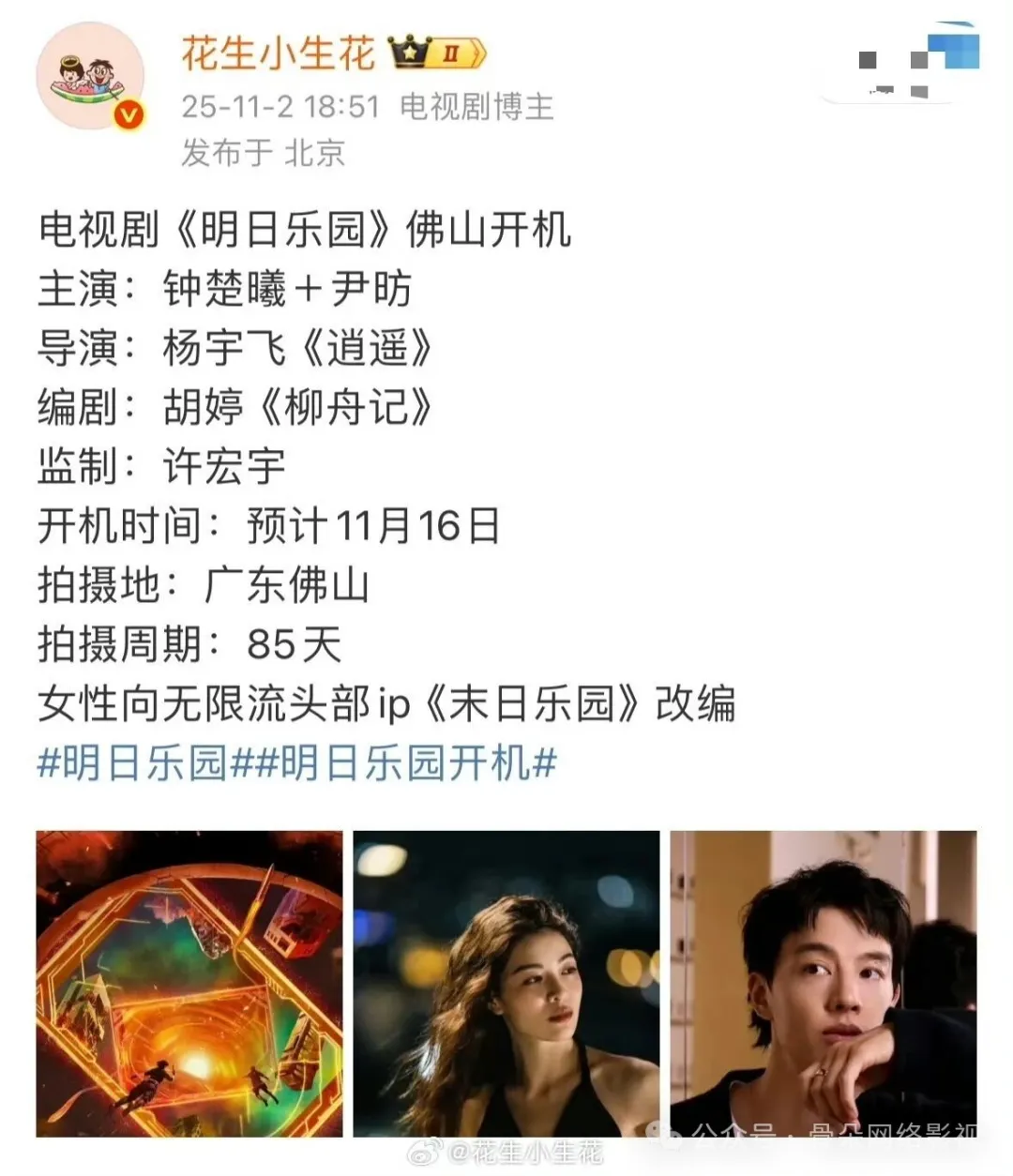 最近,一则电视剧《明日乐园》将要开机的消息引发了不少关注。