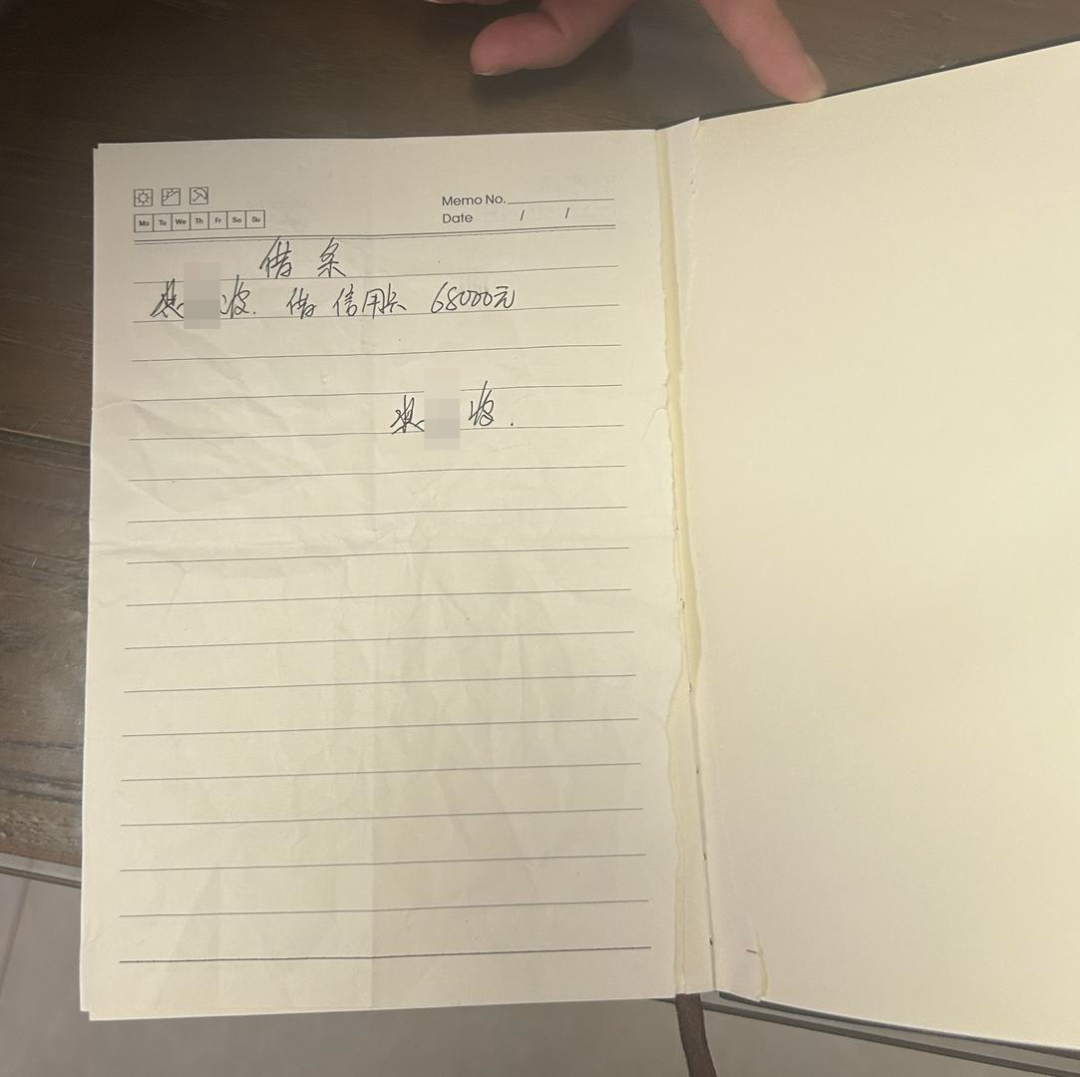 此后,裴某波又称银行卡被封,陆陆续续向申某菊借了7万元,并透支了她的信用卡。在得知申某菊信用卡被透支并承担着还贷压力时,家属建议让裴某波打借条。令他们没想到的是,2025年3月18日上午,裴某波找借口进入申某菊的干洗店中,找到笔记本上的借条并撕下偷走。本子是裴某波给申某菊的,上面还印有央企某建筑公司的字样。