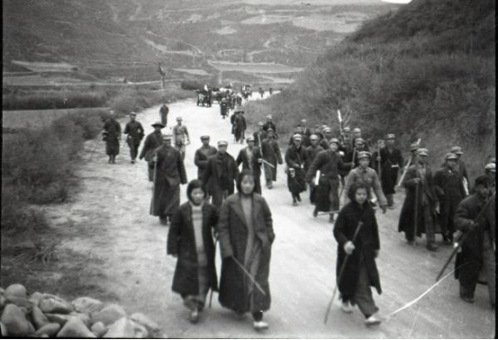 是年8月,华北联大1500名师生通过葭县东渡黄河。他们穿越敌人一道道严密的封锁线,历时三个月,徒步3000里,最终扎根于河北阜平的深山之中。
