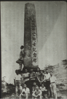 福建省立师范学校学生在永安大湖建造“抗战建国阵亡将士纪念碑”。