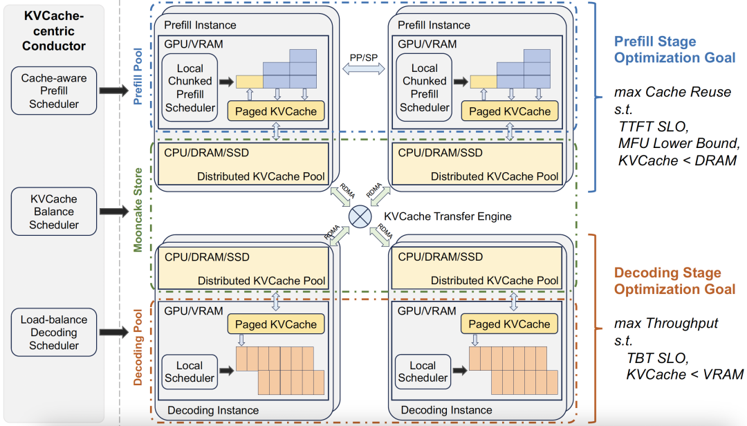KimiAI团队开发的MoonCake,以「KVCache中心化」为核心思想,构建了一个面向P/D解耦的LLM推理平台。