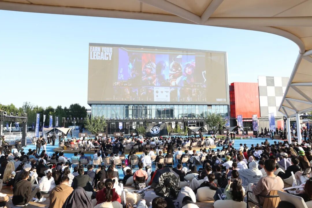 入围赛第一场,北京智慧电竞赛事中心人声鼎沸,场馆内外座无虚席。在户外广场的沉浸式观赛专区,超高清LED折角大屏将赛场内的每一个精彩瞬间实时传递,阶梯观赛区、露营休闲区、吧桌互动区的电竞迷们热烈讨论着赛况,英雄联盟角色Coser与观赛群众热情互动,电竞热情在这片创新热土不断迸发。随着赛事的举办,赛事门票、周边衍生品、战队服装等持续热销,让观众在观赛之余能够深度体验电竞文化的魅力,这也为周边商业带来了新的增长点。