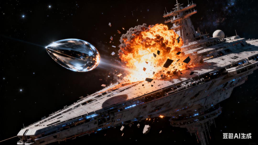 △ 笔者用豆包生成的“水滴攻击恒星级战舰”示意图