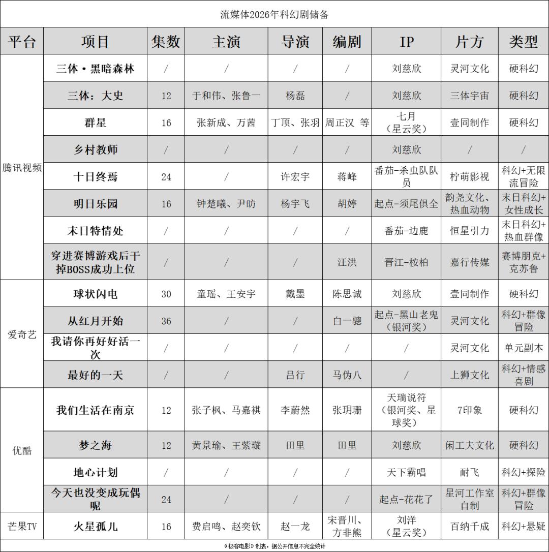 △ 流媒体2026年科幻剧储备-17部储备科幻剧主创信息