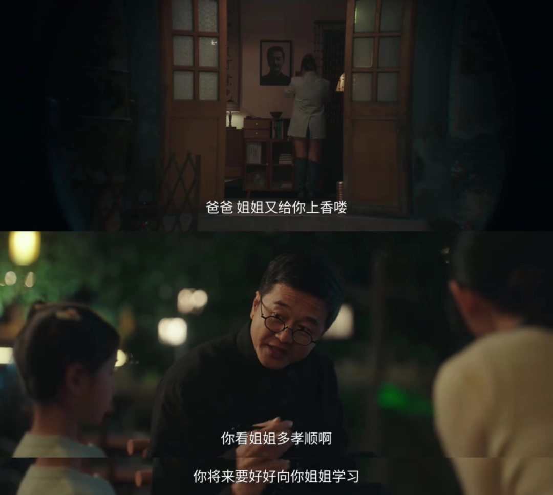 就连领居家都全是戏。得宝叔前妻和现任住对门,前妻在家里挂他遗像,每天可以看到大女儿对自己上香,得宝叔还教育小女儿要学习姐姐的孝顺。