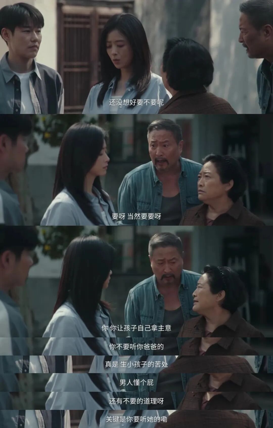 即使是宏大的主题,看似抓马的设定,通过构建“不基础”但真实可信的人物群像,《四喜》将沉重的代际、生育、血缘等议题,解构为一场场幽默与温情并存的家庭攻防战。