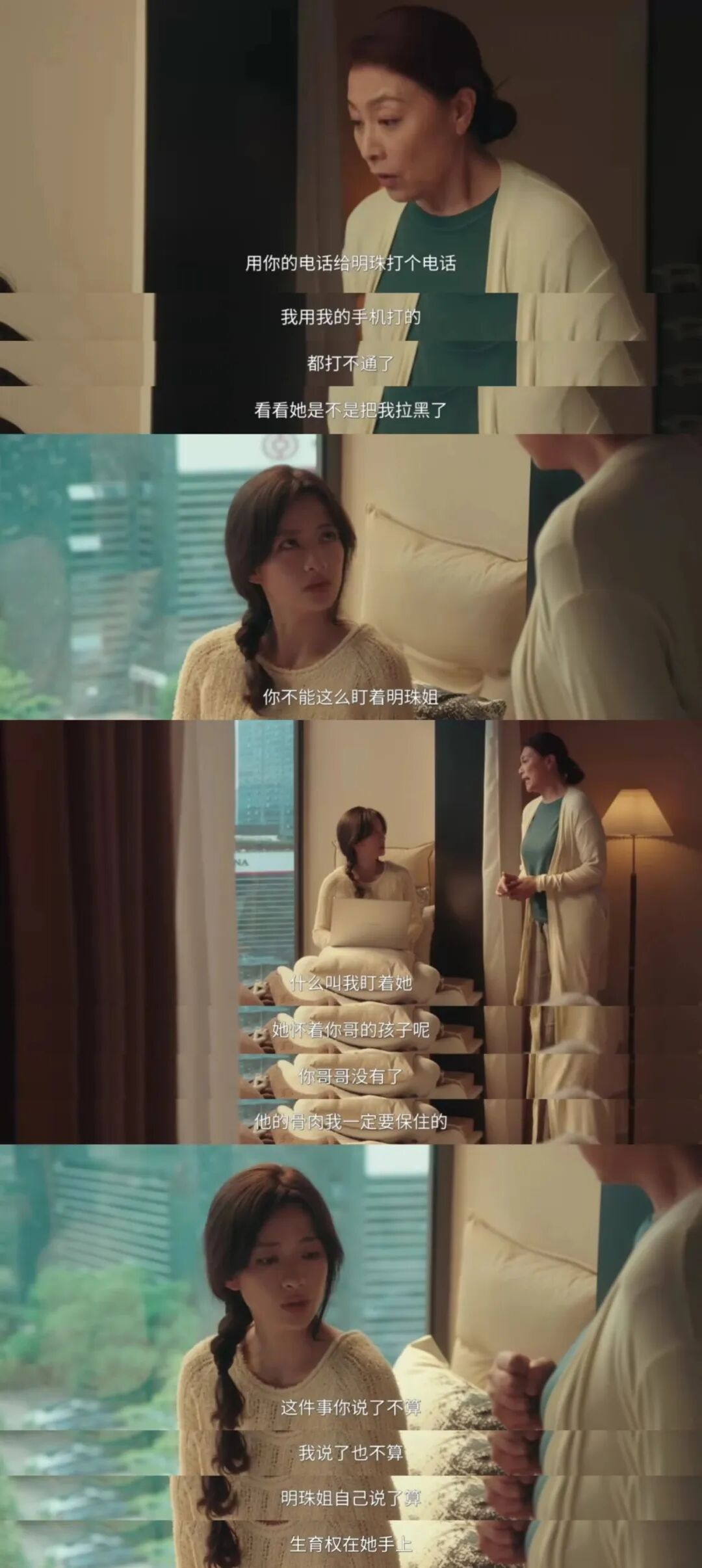 沈明珠如果受欺负,自己会反抗,“你是他的妈,我是他孩子的妈,你跟我斗没必要”。