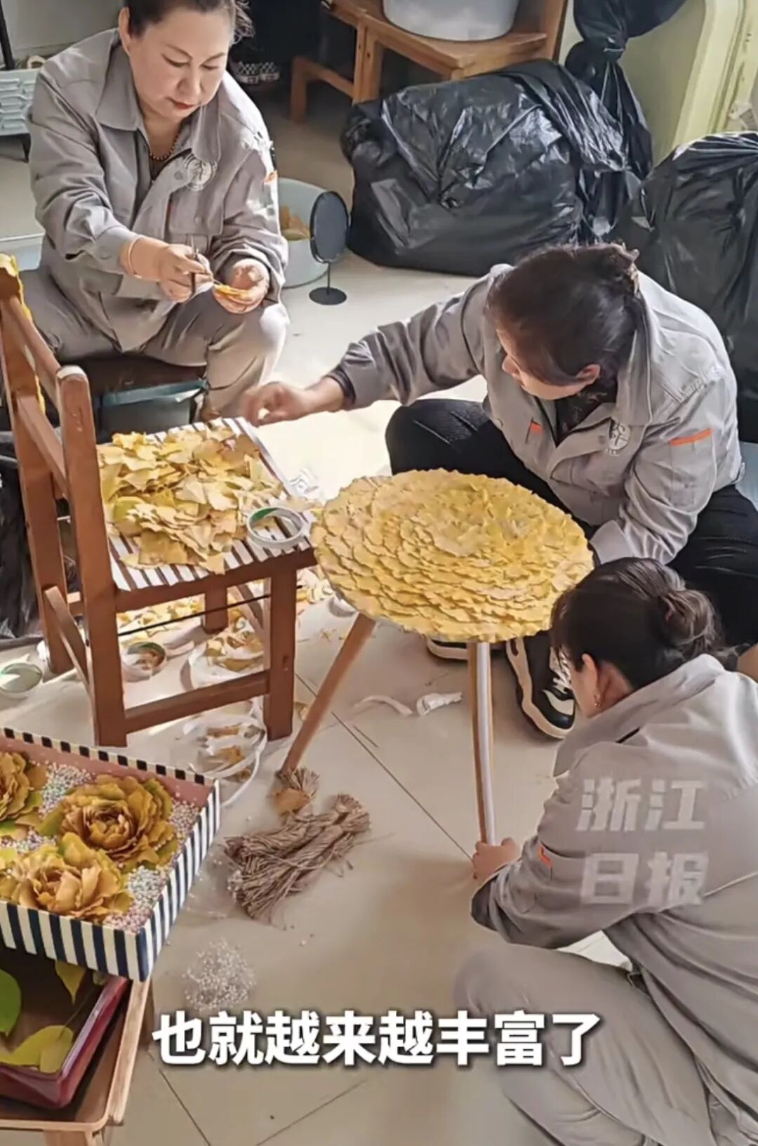 创造这些别致手工作品的是学校里的保洁阿姨们