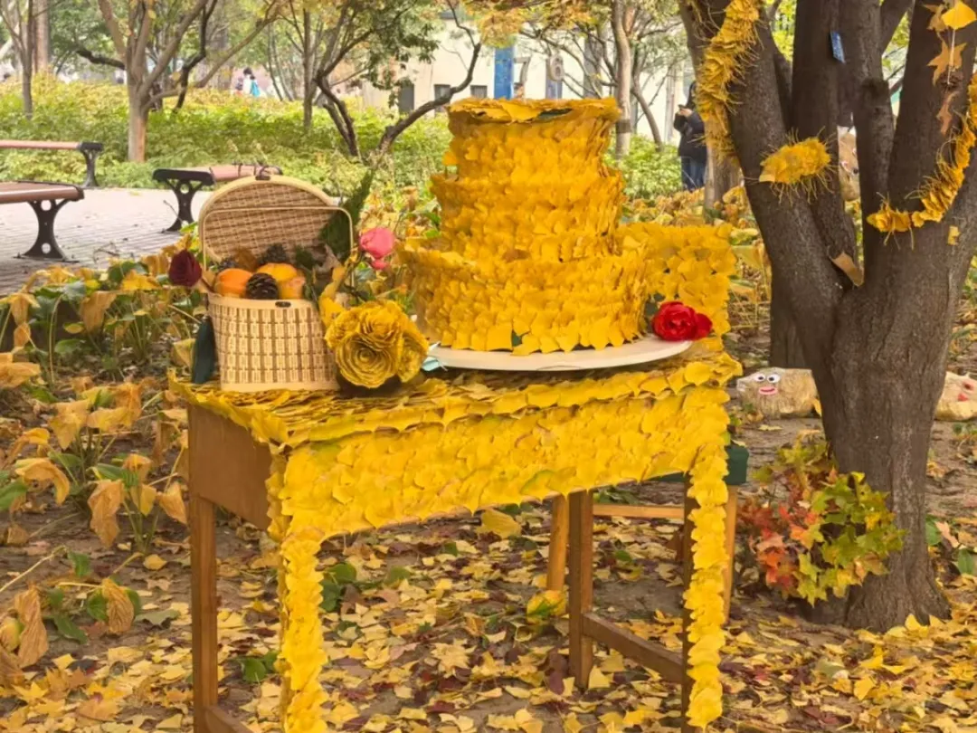 月亮、星星、笑脸、爱心……路面上随处可见银杏叶造型