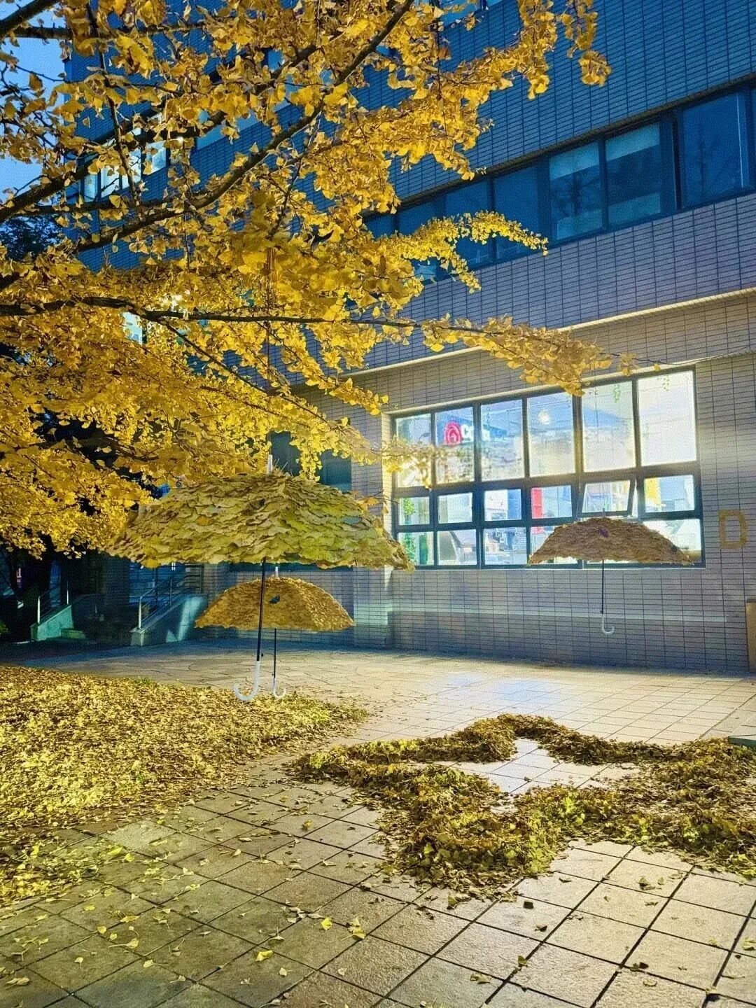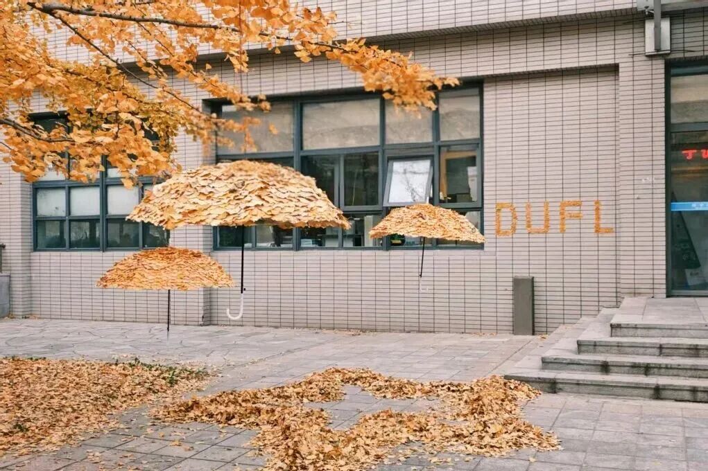 近日大连外国语大学校园的“银杏伞”在网络上迅速火出圈