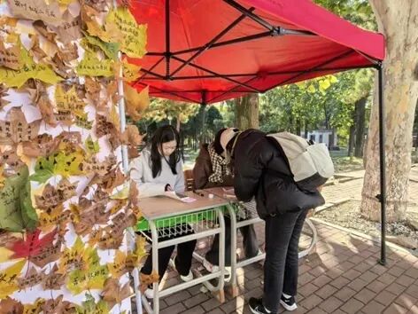 学子们用落叶寄语
