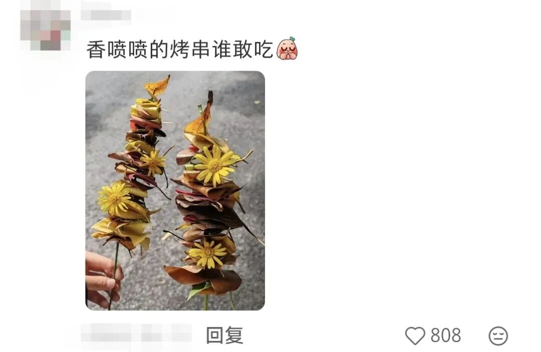 香喷喷的“落叶大烤串”↓