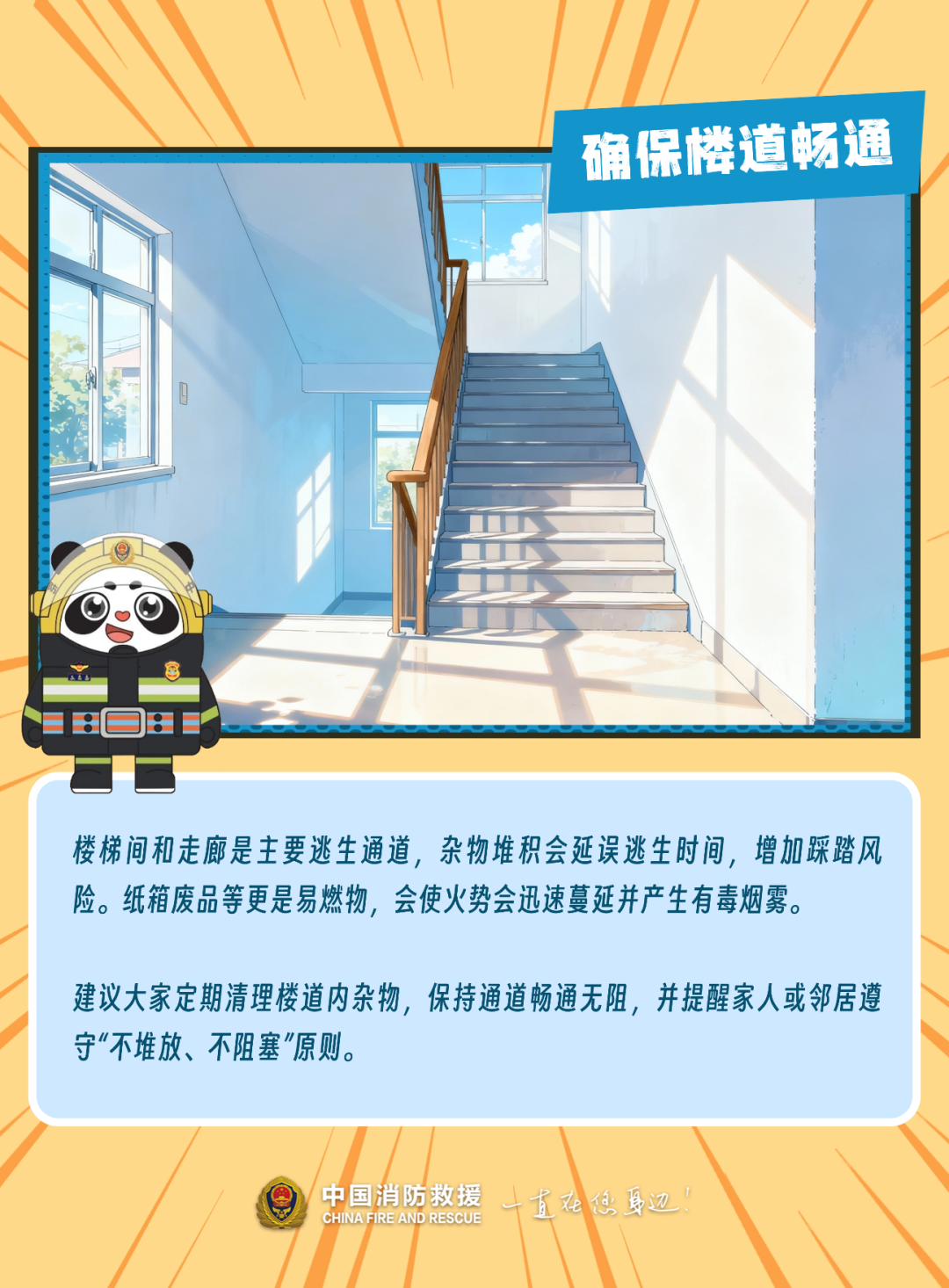 楼道及楼梯间堆积的杂物会变成“致命陷阱”。邻里间多一次提醒,少一分风险。让我们的生活环境多一些整洁,少一些隐患: