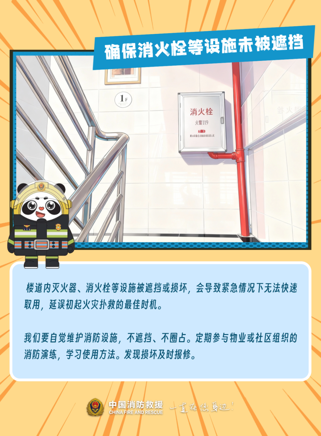 大家走进楼道内不妨看看,消火栓周边有没有遮挡物。一次弯腰整理,能守住一栋楼的平安: