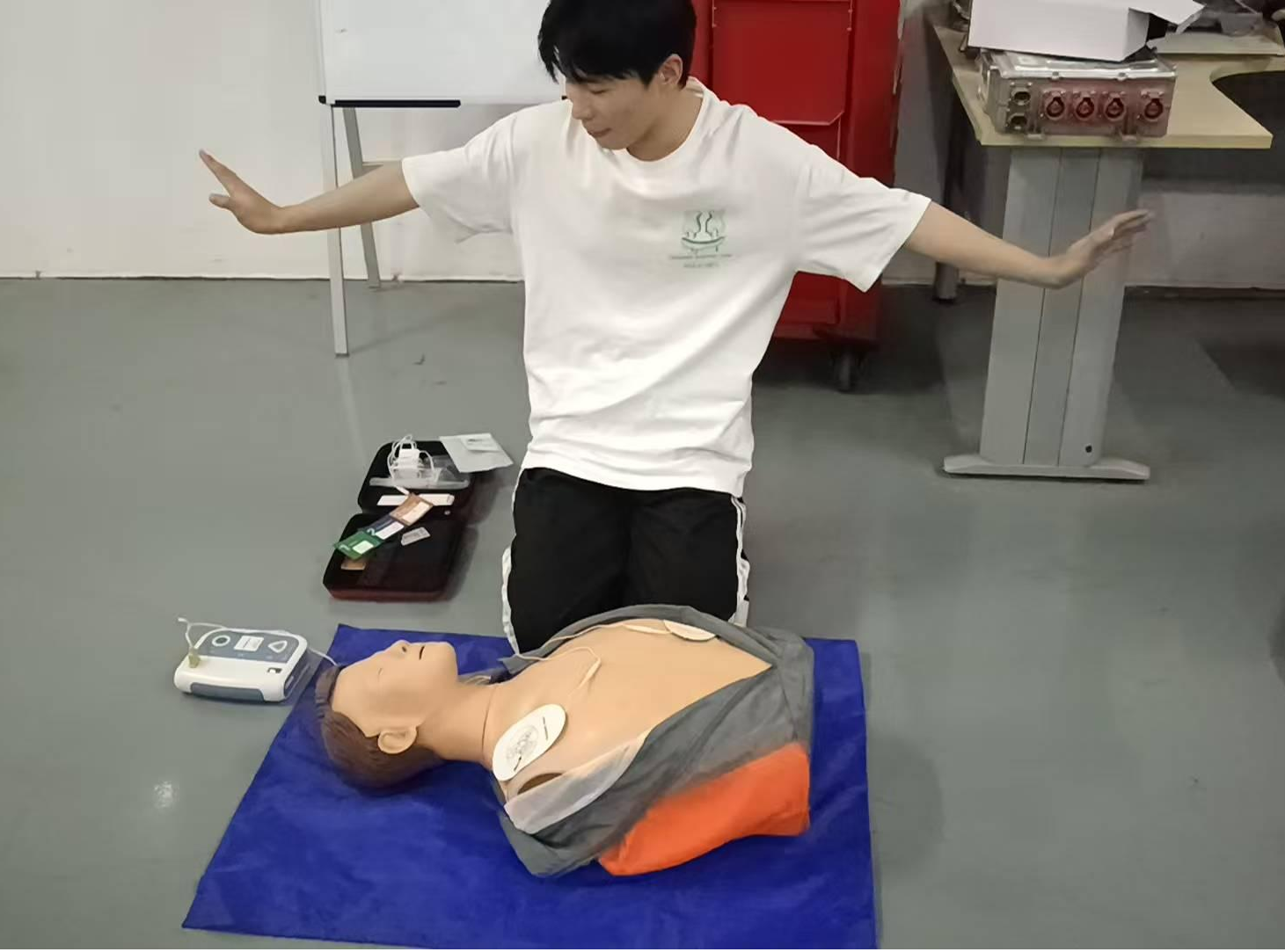 “大家看,按压时手臂要垂直于胸部,频率保持在每分钟100-120次!”在“安全教育月”的应急救护培训现场,朋辈导师王同学一边演示心肺复苏操作要领,一边指导身边同学调整动作。现场学子两人一组,手持模拟人反复练习,从手法生疏到动作规范,不少同学直呼“掌握了能救命的技能”。