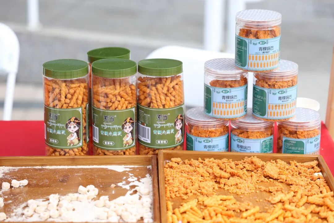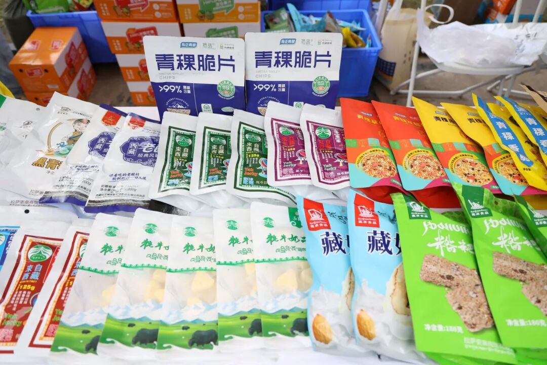 现场同步举办了藏品市集,十余个极具藏族风情的展位依次排开,展台上摆满了琳琅满目的特色商品。低GI青稞产品、藏地奶茶、风干牦牛肉制品、沙棘汁等各种特色食品及文创产品等应有尽有,彰显出浓郁的民族风情,吸引了众多市民体验品鉴。