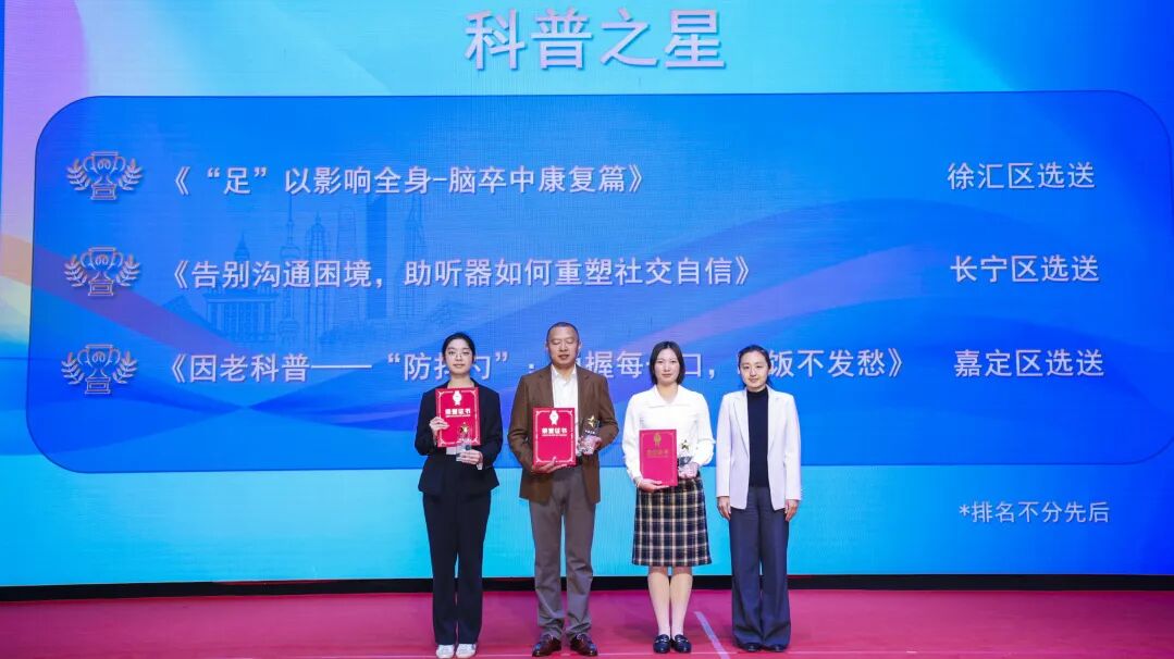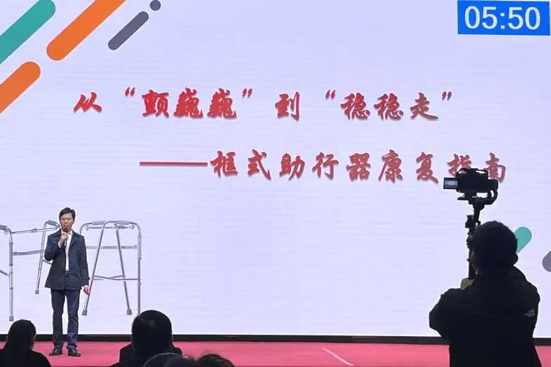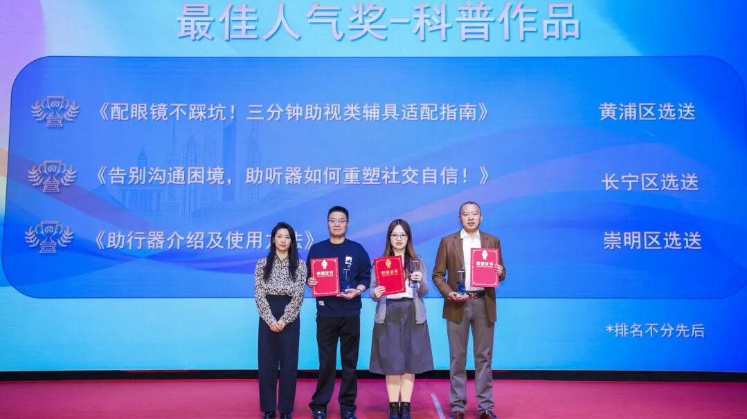 决赛的科普作品展示环节,长宁区参赛者分别运用脱口秀、情景剧等形式,将专业辅具知识转化为通俗易懂的科普内容。其中,天山中医医院、上海奥听医疗器械有限公司带来的科普作品《告别沟通困境,助听器如何重塑社交自信》,详细解读了助听器的选择与正确使用方法,并荣获“科普之星”及“最佳人气奖”;天山中医医院科普作品《从“颤巍巍”到“稳稳走”——框式助行器康复指南》则系统地讲解了助行器的适用人群与正确调节方式。