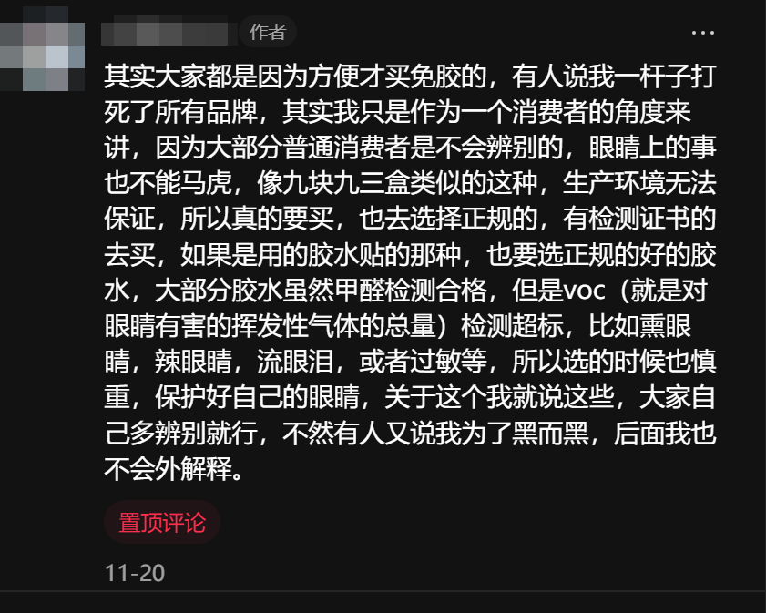 国内在免胶假睫毛可能含甲醛的风波后,也有很多姑娘站出来表示自己曾因佩戴免胶假睫毛产生过不适。
