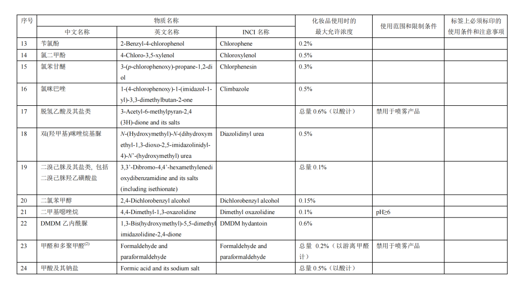 而在化妆品类目上,2015年出具的《化妆品安全技术规范》中对可用于化妆品中的甲醛及其释放体含量有了明确规定,其中规定化妆品中甲醛含量超过0.05%时要在标签中标示,喷雾产品中不得检出甲醛,其他产品中甲醛含量限值为0.2%(以游离甲醛计)。