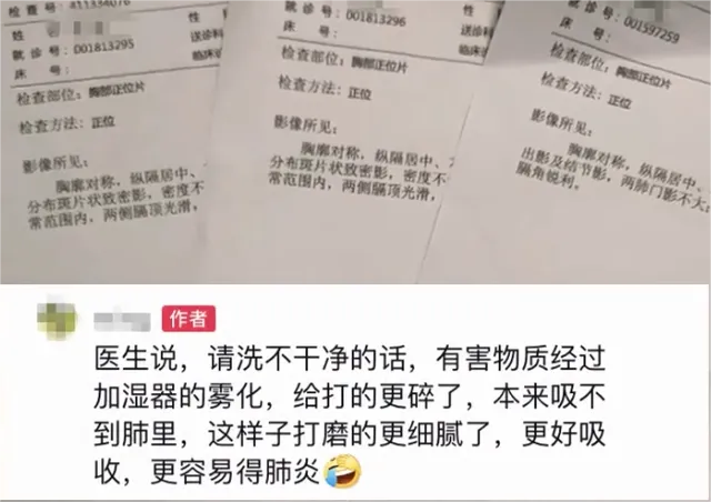 在一些社交平台,不少人怀疑孩子发热、得肺炎,也是因为空气加湿器。