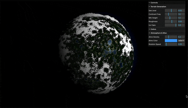 Gemini3.0Pro生成的行星、太阳系可视化3D模拟,根据调节实时变化,体验丝滑。