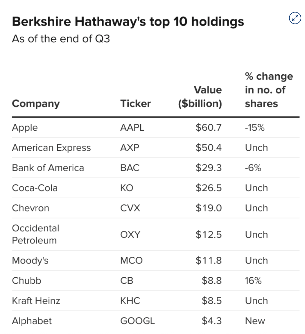 与此同时,他还减持了苹果持仓15%,持仓价值降至607亿美元。