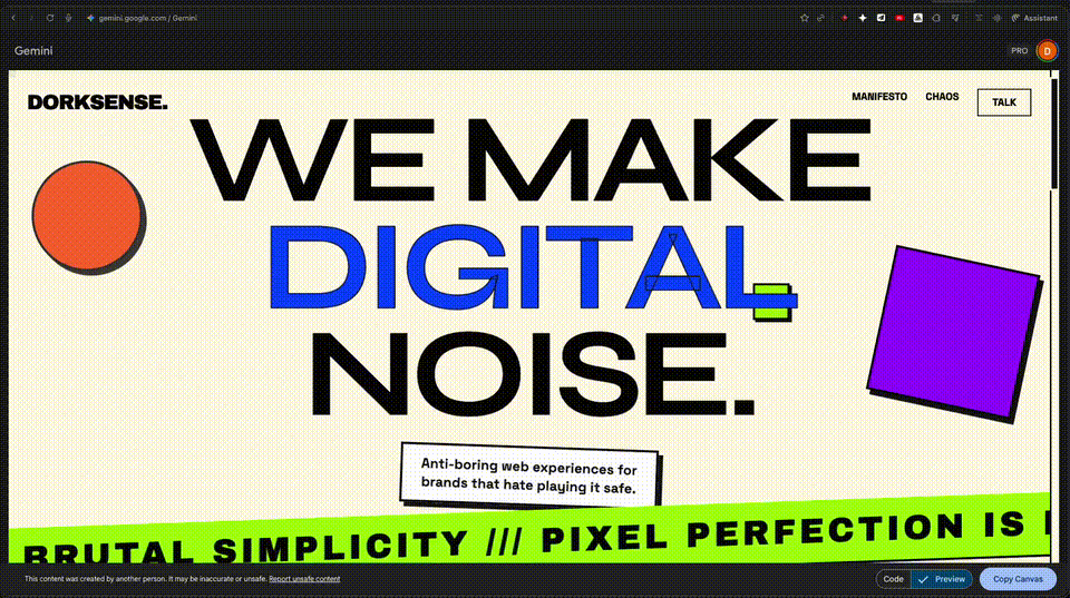 一句话直出「新粗野主义」风格的网页,Gemini3.0的创意无限。