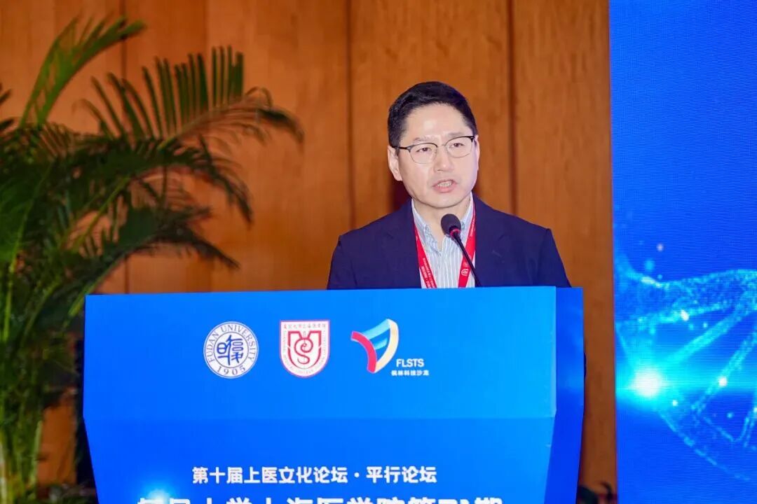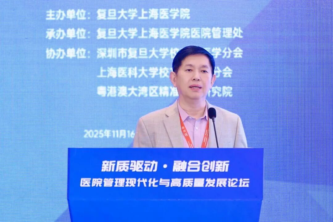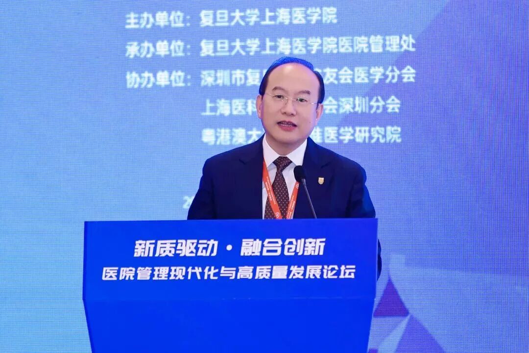 代表地方政府对论坛举办表示热烈祝贺。他指出,习近平总书记在广东考察时强调要强化科技创新与产业创新深度融合,本次论坛在粤港澳大湾区举办,正是对这一重要指示批示精神的生动践行。深圳市委、市政府始终高度重视医疗卫生事业进步,论坛为深圳与复旦及复旦上医深化合作提供了宝贵机遇与广阔空间,希望以此次活动为契机,与复旦大学建立更加紧密的战略合作关系,在