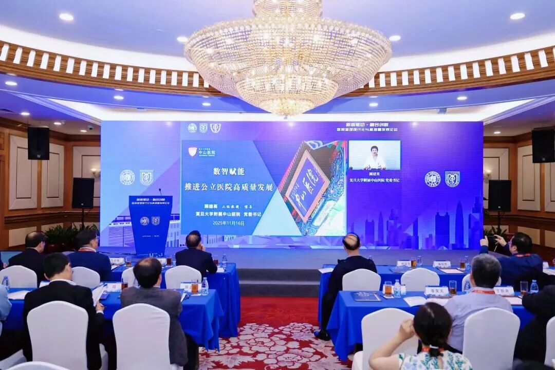 复旦大学附属中山医院党委书记顾建英以《数智赋能推进公立医院高质量发展》为题作报告