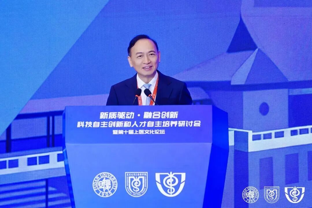 在致辞中指出,回首近百年的办学历程,“人才自主培养”始终是复旦上医执着坚守的初心,“科技自主创新”始终是复旦上医矢志不渝的追求。他表示,上医