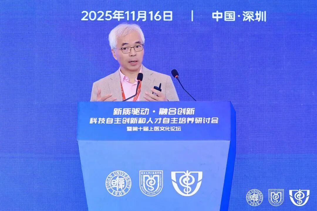 11月16日,“新质驱动·融合创新——科技自主创新和人才自主培养主题研讨会暨第十届上医文化论坛”在深圳市举办。本次论坛由复旦大学上海医学院、复旦大学校友总会、上海医科大学校友会联合主办,值此复旦大学建校120周年、上海医学院创建98周年、深圳经济特区成立45周年的重要节点,海内外医学领域顶尖专家、行业领军人物、校友代表500余人齐聚南海之滨,共探医学科技创新与人才培养新路径。
