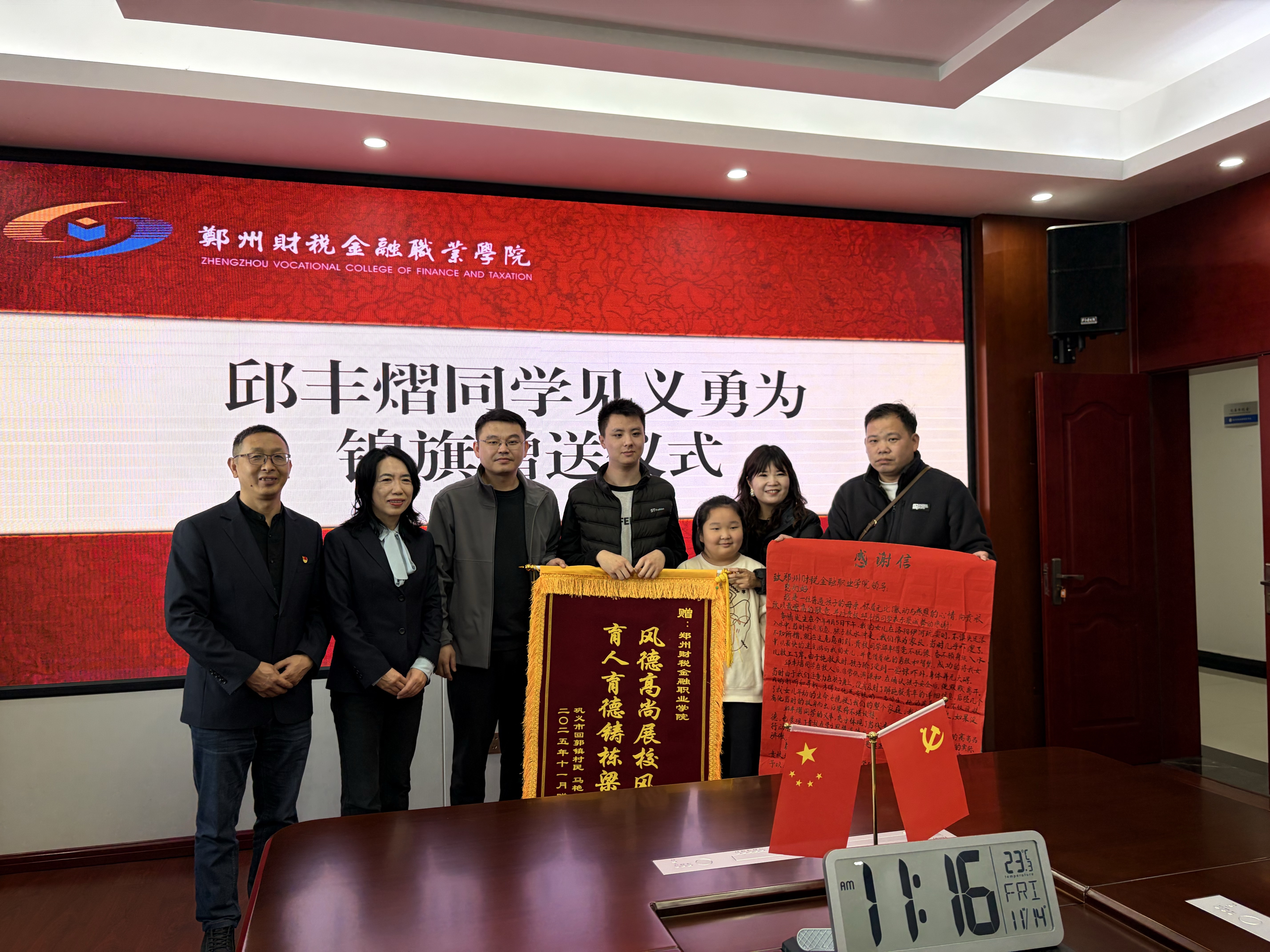 作为河南省职业教育特色院校,郑州财税金融职业学院始终将“德行立身”作为人才培养的核心准则,把德育工作贯穿教育教学全过程,构建起“课程德育+活动德育+实践德育”三位一体的育人体系,让品德修养与专业成长同频共振。学校注重以活动为载体厚植德育底蕴,每年定期举办“道德讲堂”、开展“弘扬教育家精神”主题演讲赛等活动,邀请行业模范、优秀校友分享成长故事,用身边榜样引领学生成长;通过“书香河南”等活动品读红色经典、道德寓言,让“崇德向善”的理念浸润人心。从课堂上的理论学习到实践中的品格磨砺,从校园内的志愿服务到社会中的挺身而出,“崇德向善、勇于担当”的种子在每一位学子心中生根发芽。邱丰熠同学在他人生命遭遇危难时,将个人安危置之度外,以勇敢和智慧成功施救,避免了悲剧的发生,不仅挽救了一个年幼的生命,也温暖了一个家庭,更在社会上弘扬了正气,传递了正能量。