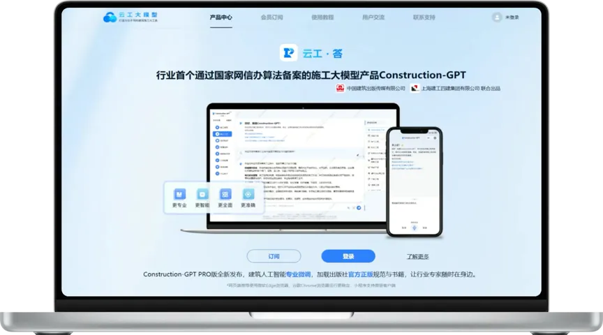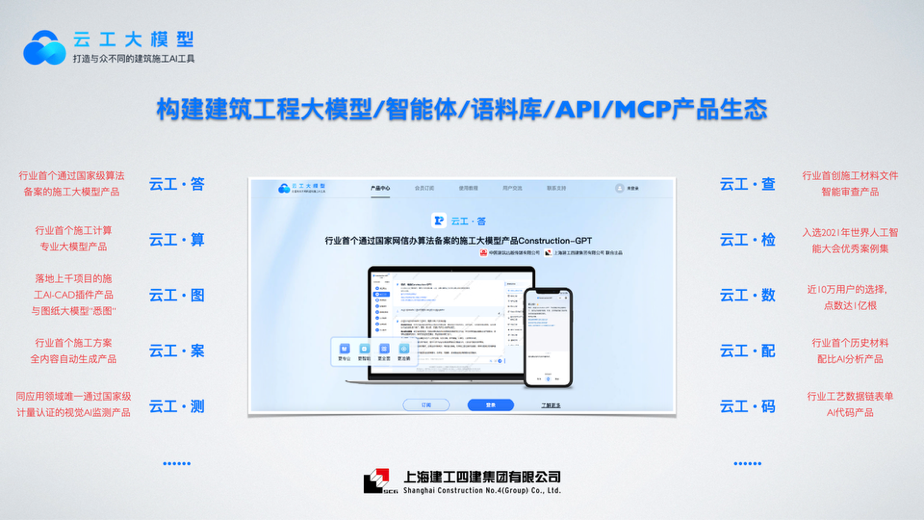 自2024年9月正式发布以来,“云工大模型”已上线包括首个施工大模型产品“云工·答”Construction-GPT在内的一系列行业首创大模型产品,深度赋能建筑工程应用场景,累计形成自主知识产权成果200余项,荣获科技奖励30余项,在填补行业空白的同时,助力