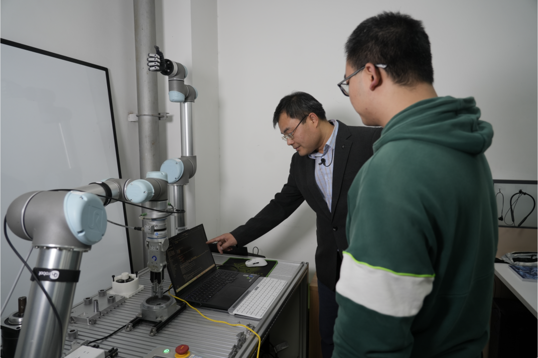 ”的塑造。为此,他邀请企业工程师走进课堂,分享生产一线中的实际问题;同时将最新科研进展与成果融入教学,团队的硕博士研究生也成为课堂的“特邀嘉宾”,切实做到“科研融入和反哺教学”。从大三时在刘永奎的课上看到学长学姐带着机械臂来演示、讲解,到自己成为分享者,朱子璐也会把自己的科研情况、参赛心得与刘永奎所带班级的本科生进行交流。