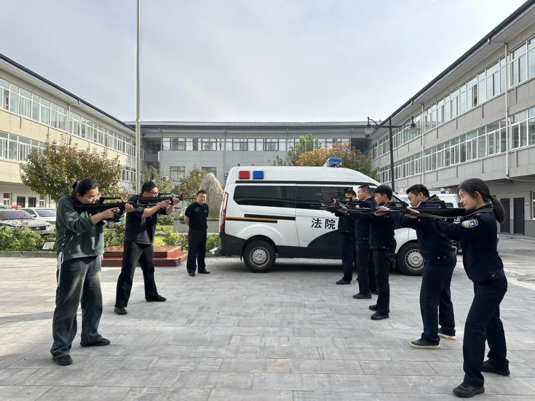 在训练场上,没有庭审的庄严肃穆,却有着不输实战的紧张氛围。一声声清脆的指令划破长空,身着作训服的司法警察迅速展开阵型,持枪、战术交流的流畅动作交织在一起——这是三原法院司法警察大队聚焦“实战、实用、实效”,开展战术训练的生动场景。