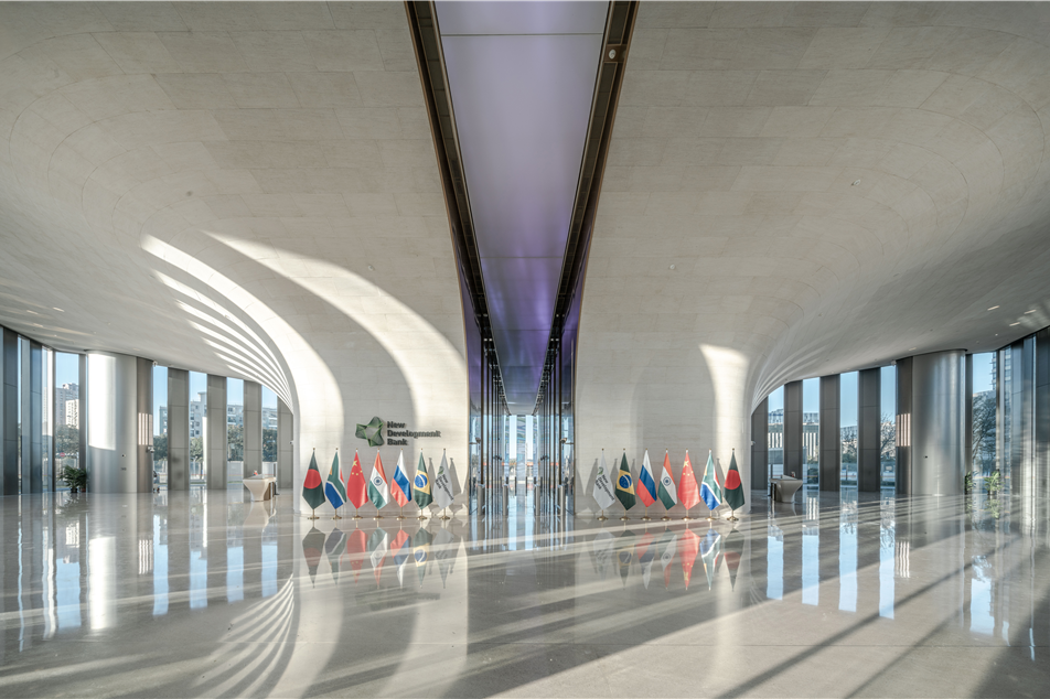 在当代城市发展中,金融总部空间已超越传统的办公功能,成为区域产业生态与城市形象的重要载体。环境院设计团队早在承接上海票据交易所项目之前,就已深度参与了新开发银行总部、国际货币基金组织上海区域中心等多个国际金融机构的空間设计与构建。这些实践让团队积累了对金融机构运营逻辑与空间需求的独特理解——从交易场所的安全规范到跨国协作的空间布局,从技术机房的特殊要求到人文环境的营造,并逐步形成了一套能够响应金融业务特殊性与前瞻性的设计方法论。