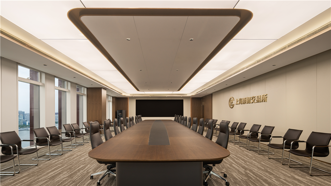 在室内设计层面,环境院团队以“精致严谨,金融气质”为核心理念,对上海票据交易所所在的十至十五层进行了系统性规划,构建出一个兼具功能性、人文性与标识性的专属办公空间。