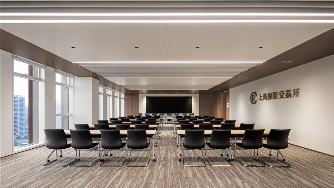 2025年9月26日,上海票据交易所正式入驻世博滨江·鼎博大厦,与上海数据集团等多家行业领军企业共同构建数字金融科创产业的集聚生态。华建集团建筑装饰环境设计研究院(以下简称“环境院”)承担了上海票据交易所项目所在楼层的室内原创设计及露台景观原创设计工作,以专业的设计语言回应金融办公空间的现代需求,为这一国家级金融要素市场的运营与发展提供扎实的空间载体。