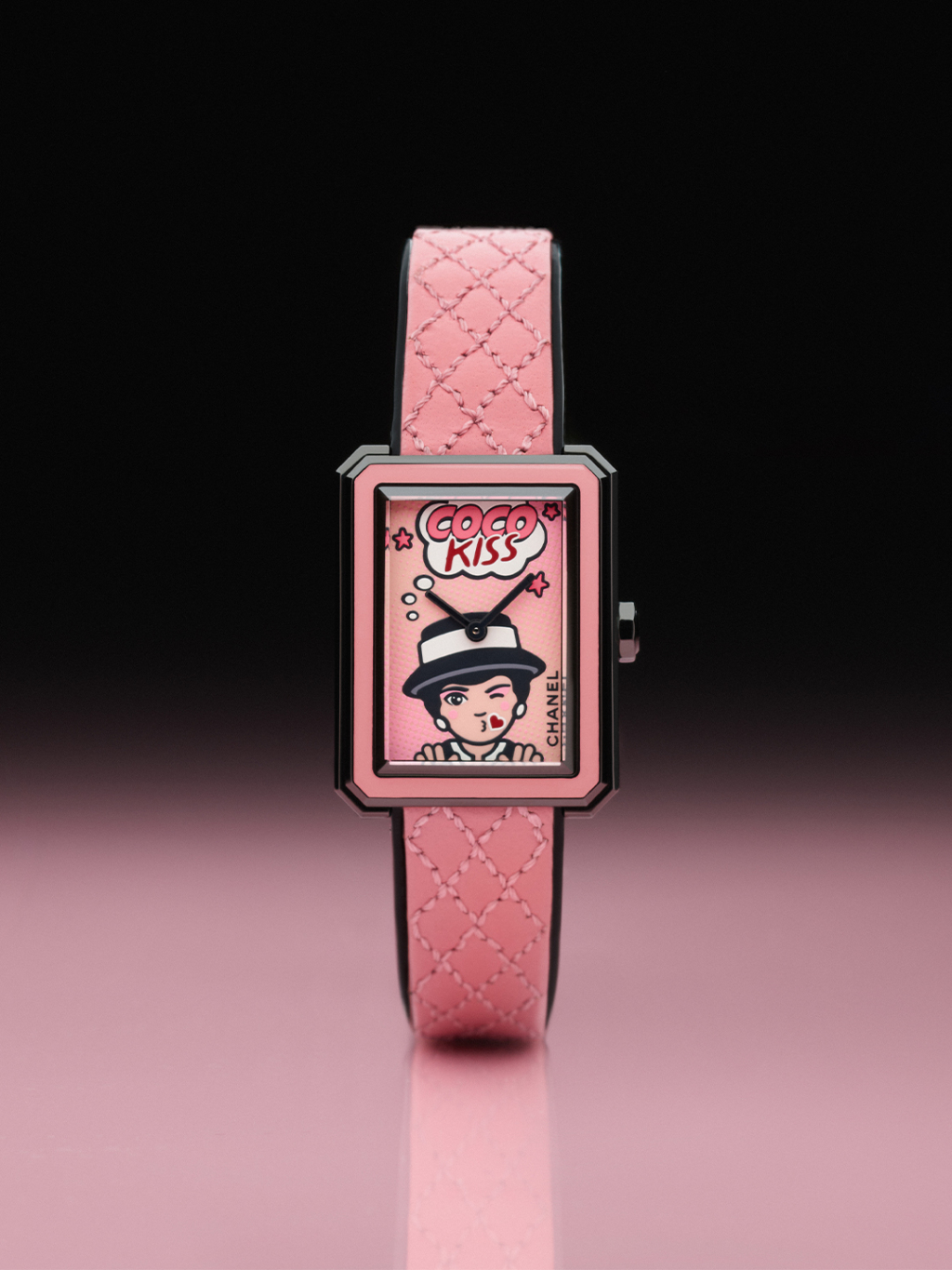 2025年,香奈儿腕表创意工作室推出了BLUSH限定系列腕表。该系列不仅致意嘉柏丽尔·香奈儿创新演绎的美妆世界,更直接从彩妆创意工作室的色盘中汲取灵感。粉色轻扫、红色晕染,眼影般的压纹浮雕被精湛的制表工艺定格于表盘之上。在这里,色彩化身为一种鲜活的制表语汇,为精密机械注入了前卫大胆的自由能量。