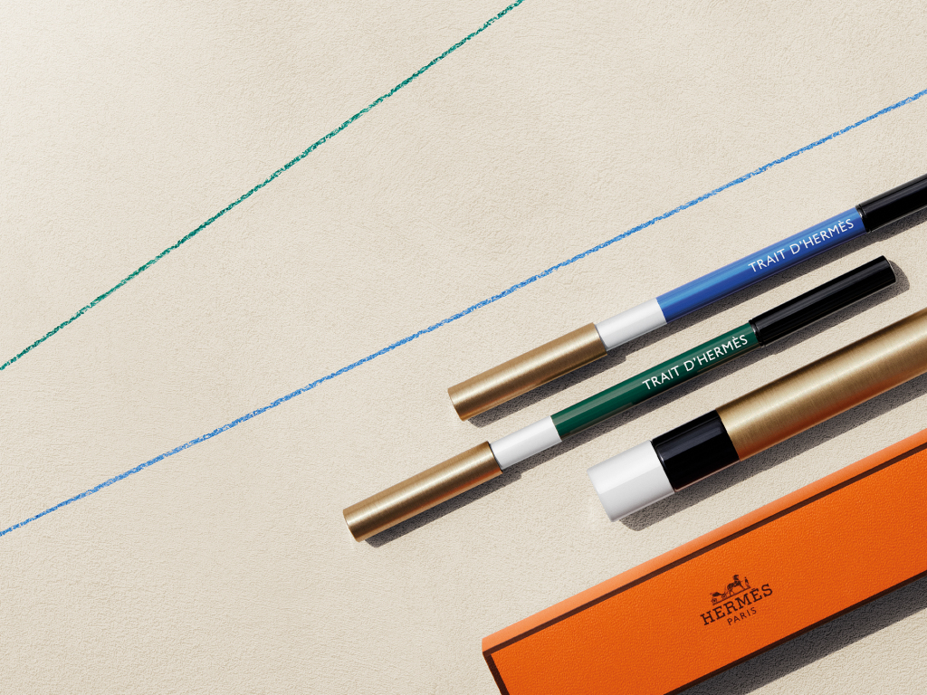 每一款眼线笔与唇线笔均采用可持续森林木材制作。爱马仕美妆产品设计总监Pierre Hardy从马术障碍赛的彩色跳杆中汲取灵感,通过H字样金色金属笔盖与三色亮泽漆彩的组合,实现了视觉上的微妙平衡。“我希望这件看似寻常的物品能独具一格,通过极具几何张力的反差戏法,在白色、彩色和金属之间巧妙碰撞。”Pierre Hardy表示。